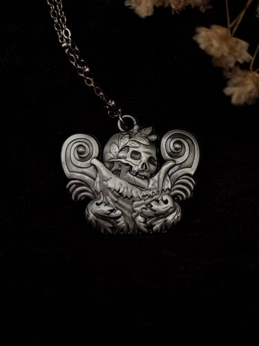 We designed these pieces after some of our favorite symbolism from Memento Mori carved art.