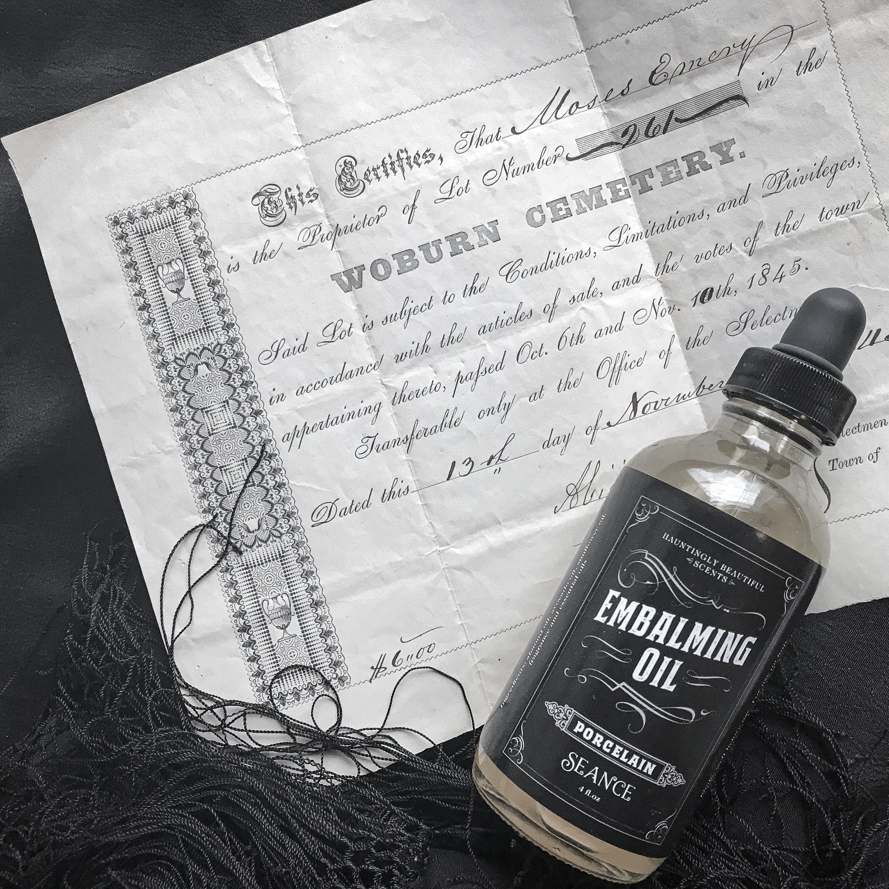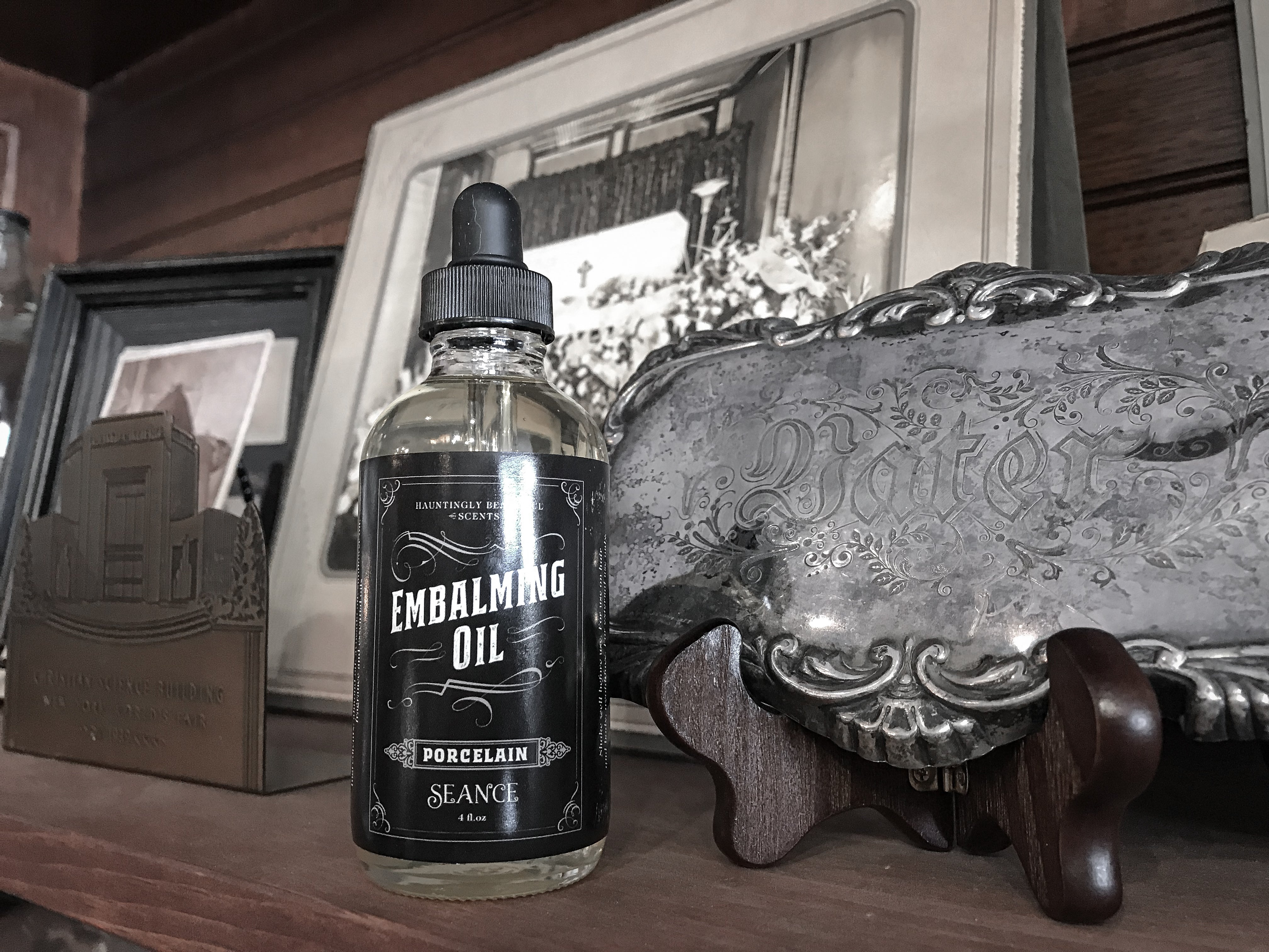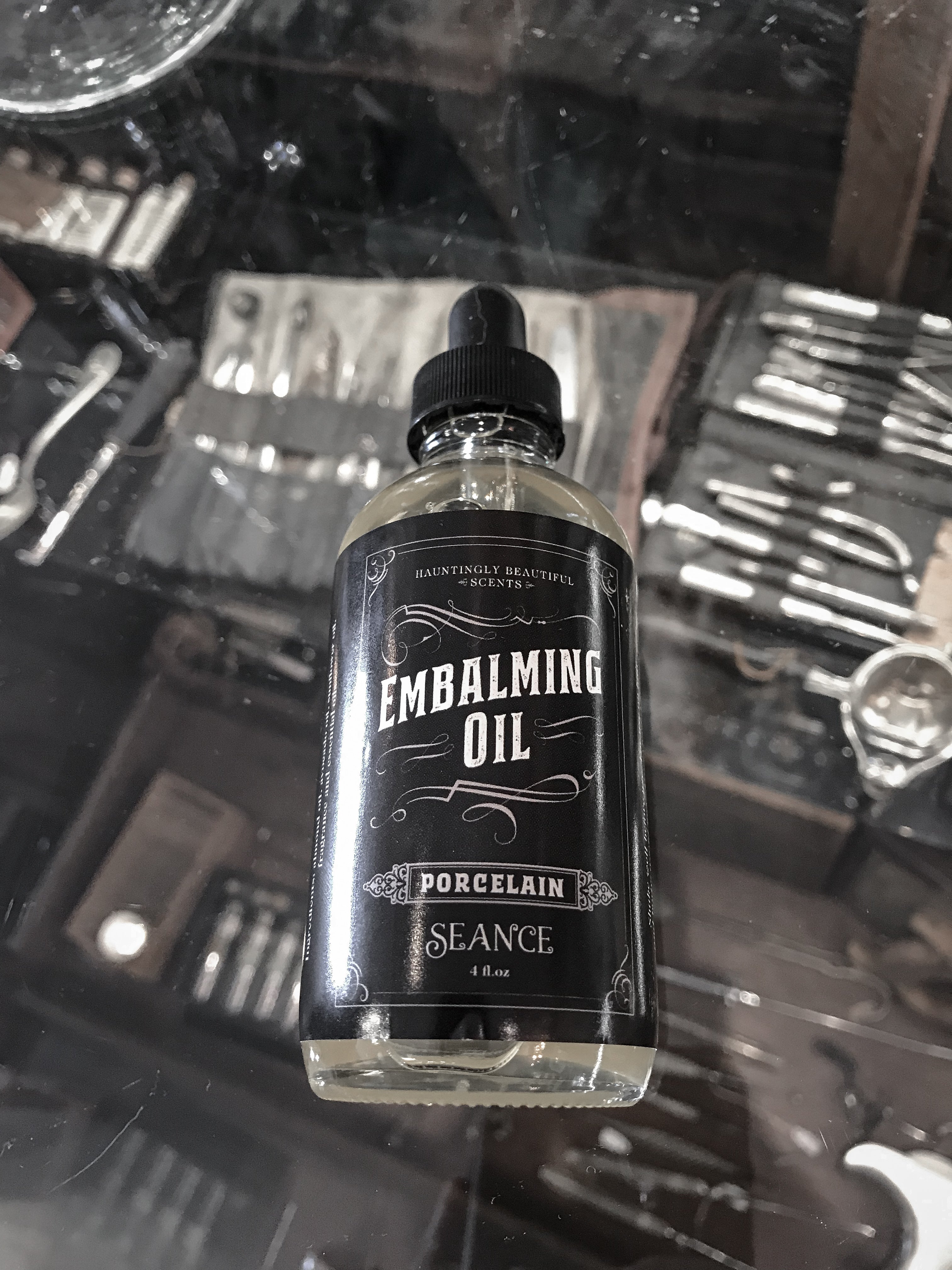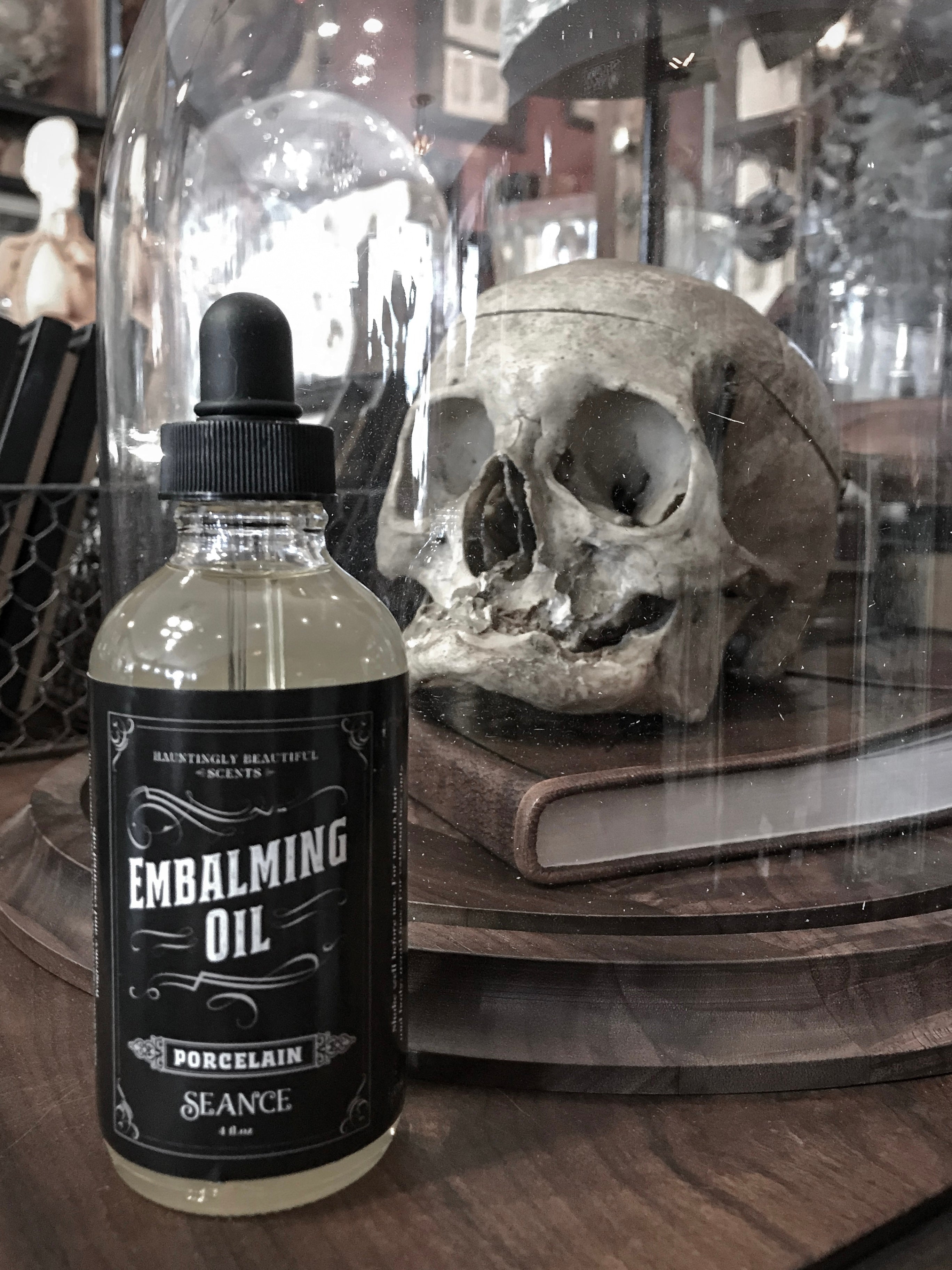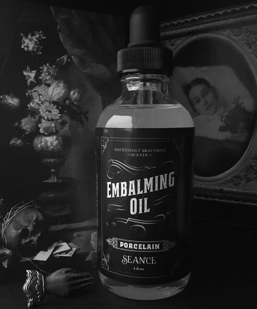 Our Embalming Oil is a concentrated lotion oil for body and hair. Made with top quality ingredients. Unlike traditional lotions this product contains only the essentials for your skin- free of parabens, palm oils and harsh chemicals. Use this lotion to hydrate skin. It will absorb into your skin fully within 10 minutes, leaving you feeling silky soft- preserving your mortal beauty.