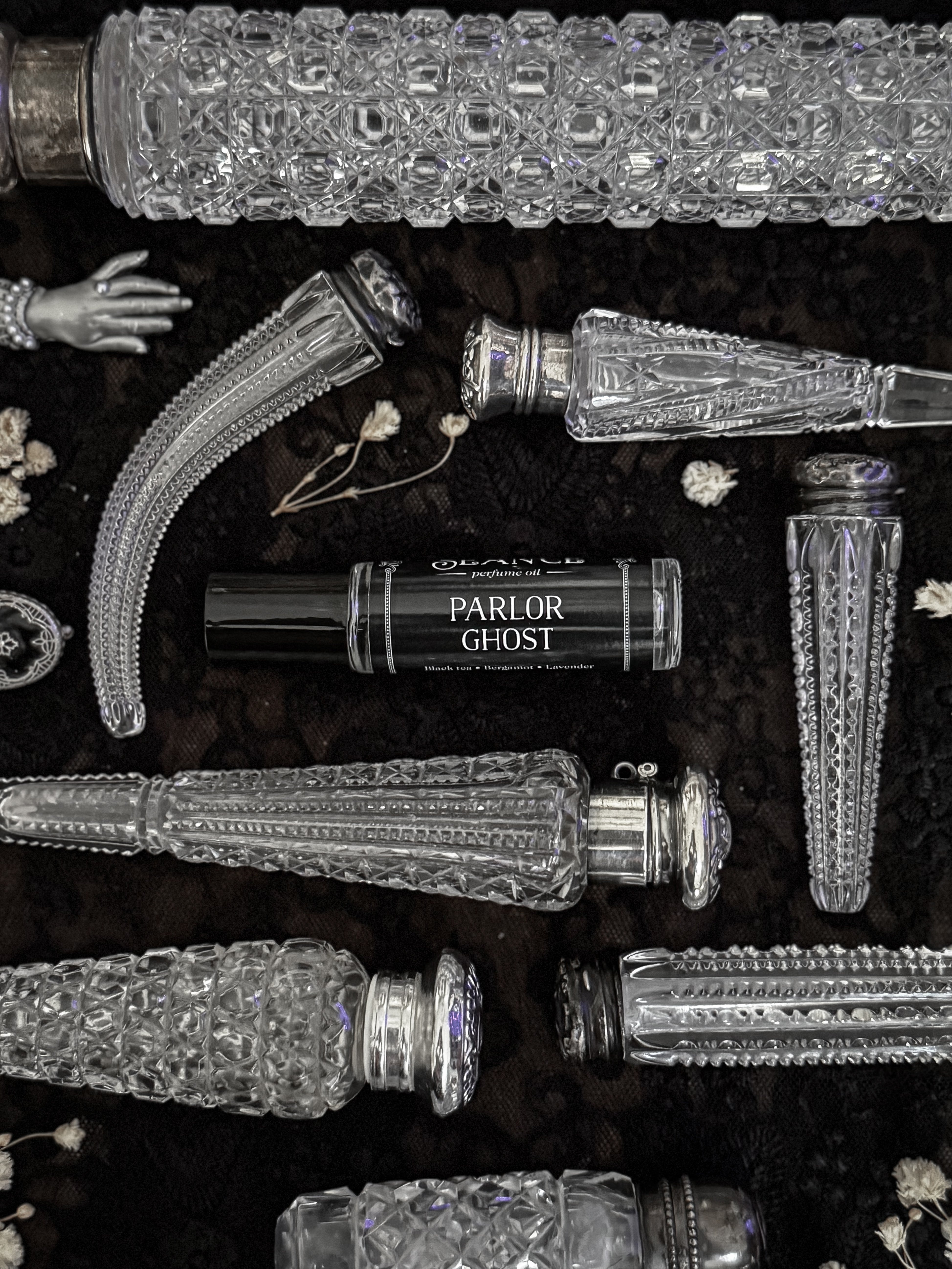 There is something in this room. Emanating somewhere among the heavy velvet curtains and damask wallpaper is a rich and lively aroma that betrays the parlor's stillness. Black tea, dried lavender, and bergamot zest hang in the air. The mind soon begins to wander: perhaps this is not the scent of something, but of an unseen someone hoping to be noticed.